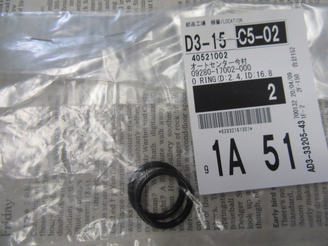 このオーリングはヘッドナットに使うもので