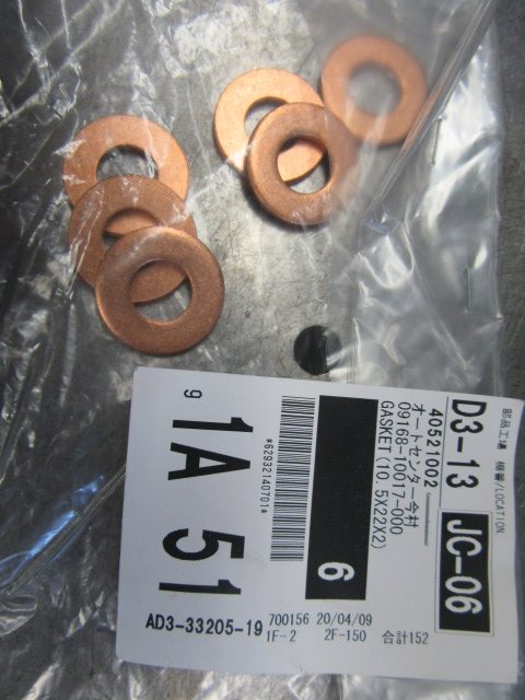 スズキ系はアルミや銅のガスケットではなく