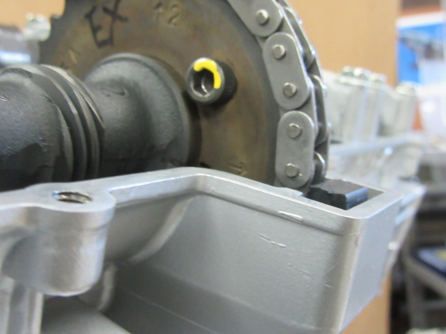 カムチェーンのスライダー前側。交換します。